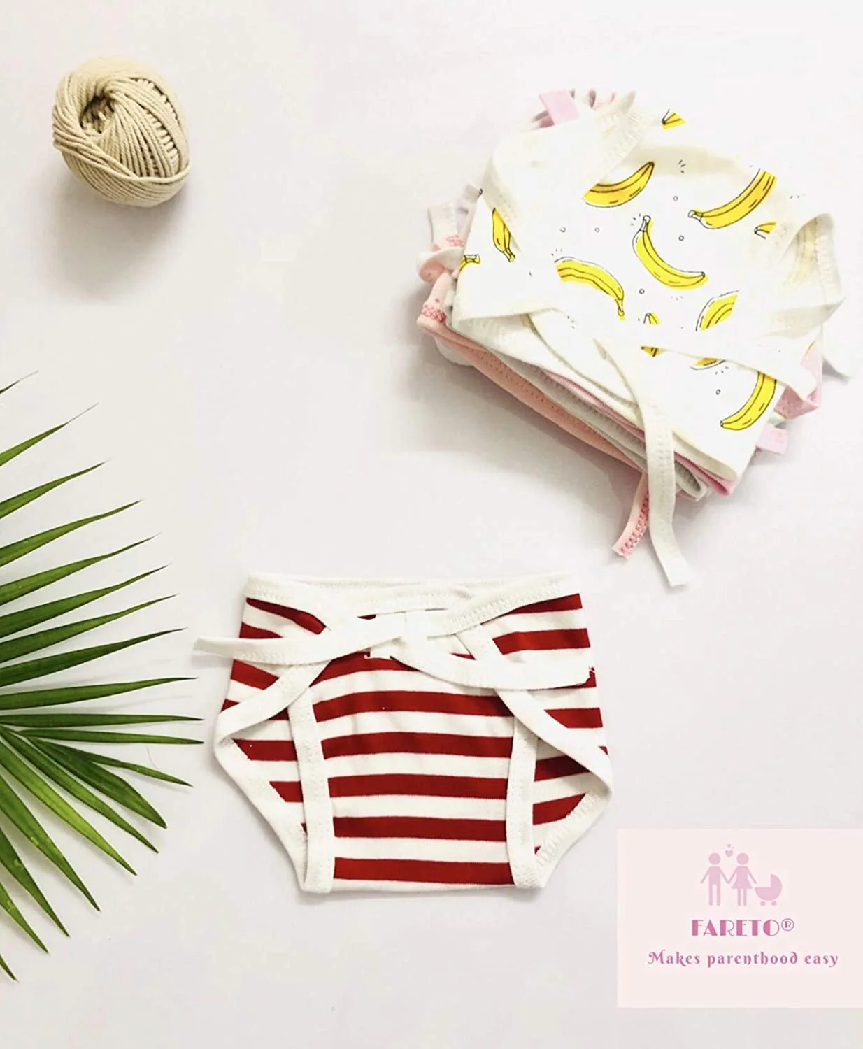 Baby washable & reusable nappies come with soft hosiery cotton fabric with premium quality finish, this nappies come with hand crafted fabric which is specially designed for your baby comfort. Most essential new born product from the house of Fareto. this pack contains 12 pieces of nappies which is suitable from birth to 3 months.