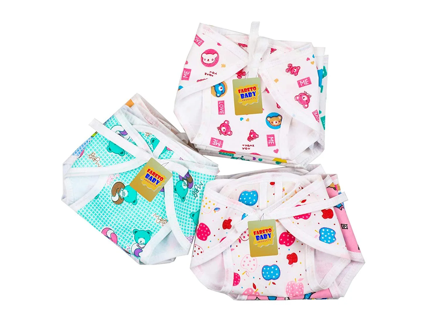 Fareto Born Baby Double Layer 12 Cotton Nappies/Tying Langots/Cloths Nappies(Assorted)(Double Layer Cotton) (0-3 Months)(F127)