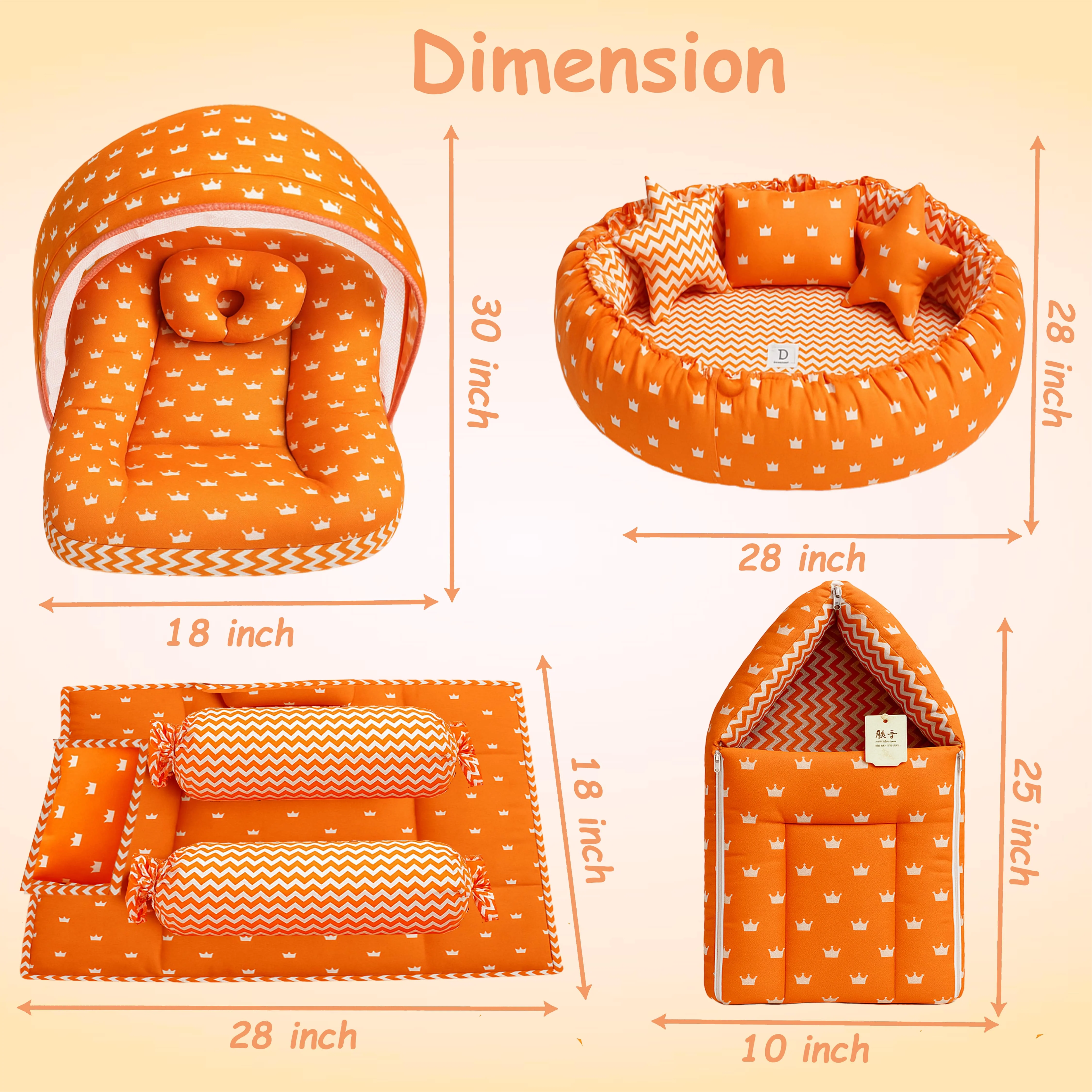 Fareto New Born Baby Full Bedding Set Combo (Crown Orange) (0-6 Months)(F21)