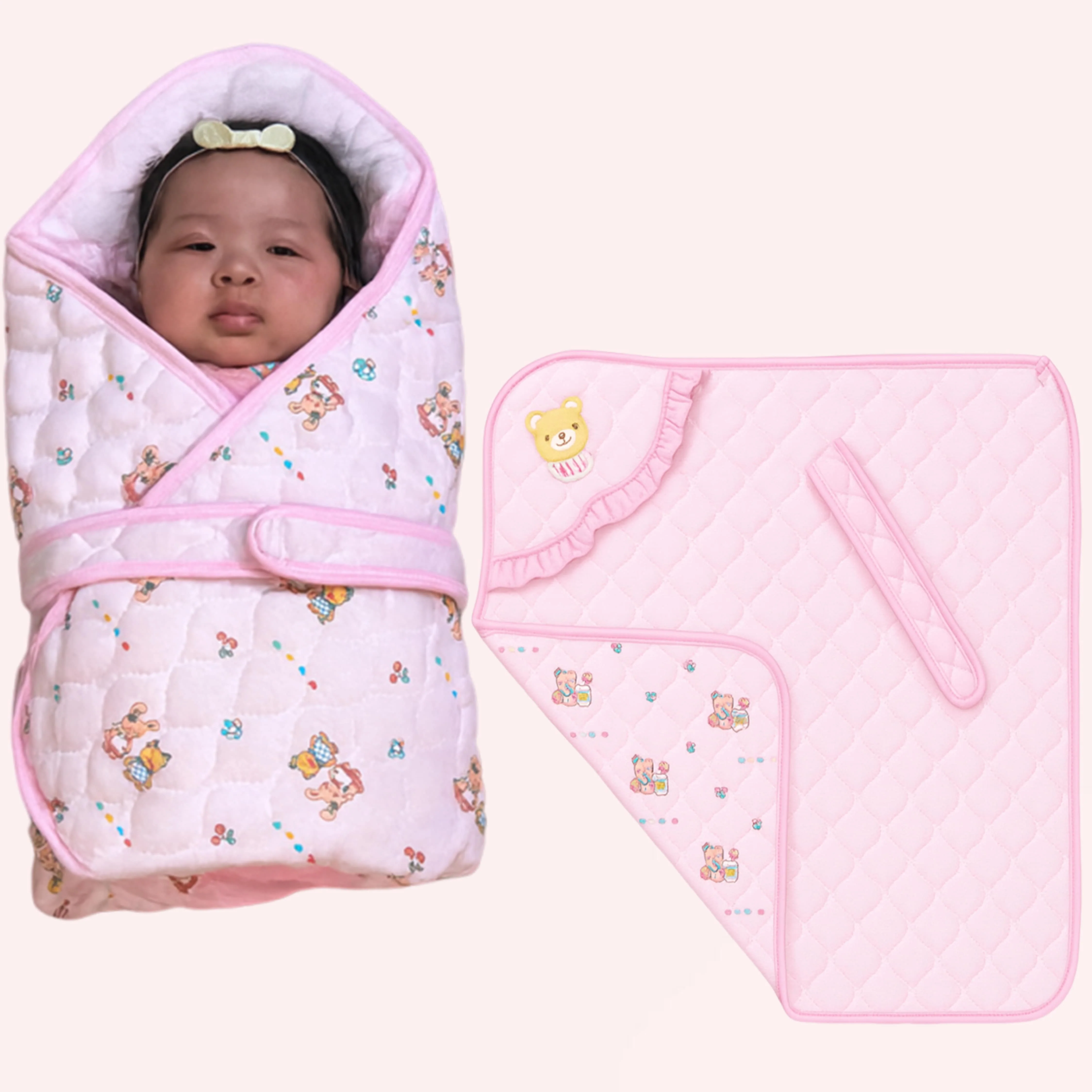 Fareto New Born Baby Hooded Quilted Wrapper – Soft & Cozy Blanket | ( 0–12 Months)(F663)