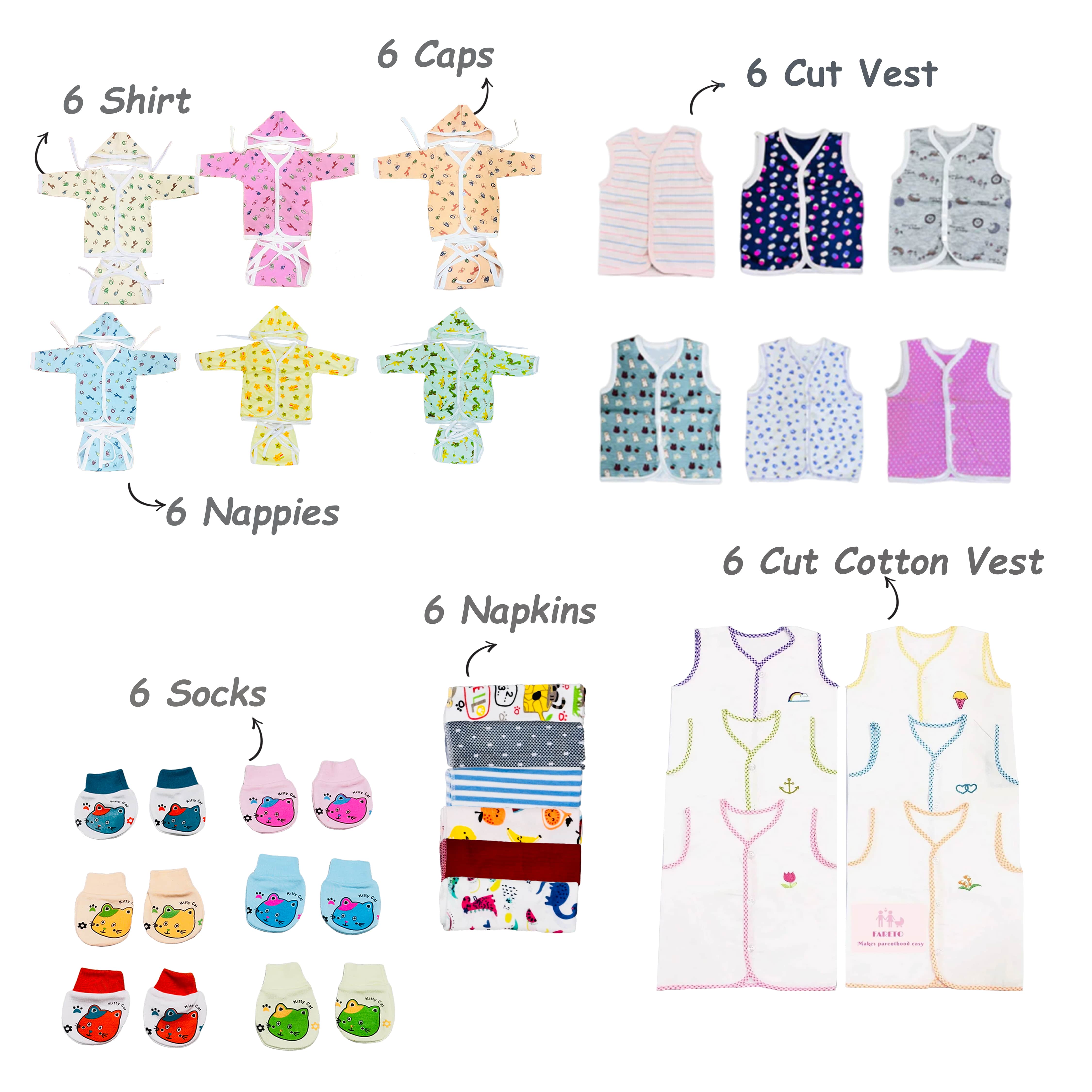 Fareto New Born Baby Premium Quality 101 Summer & Moderate Combo Baby Essentials All in 1(0-6 Months)(F219)