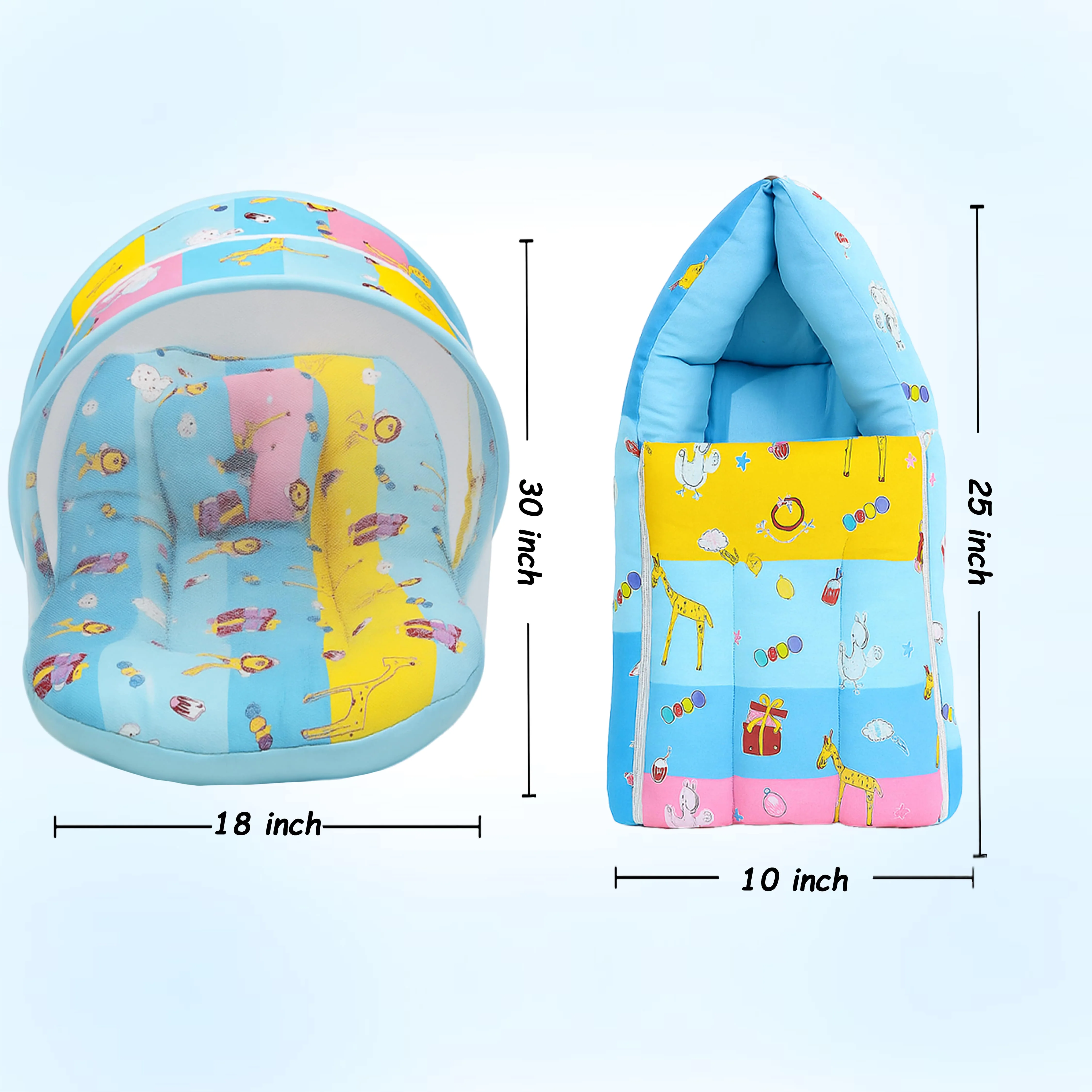 Fareto New Born Baby Premium Quality Mattress with Net & Sleeping Bag(0- 4Months)(Blue Ziraf)(F84)