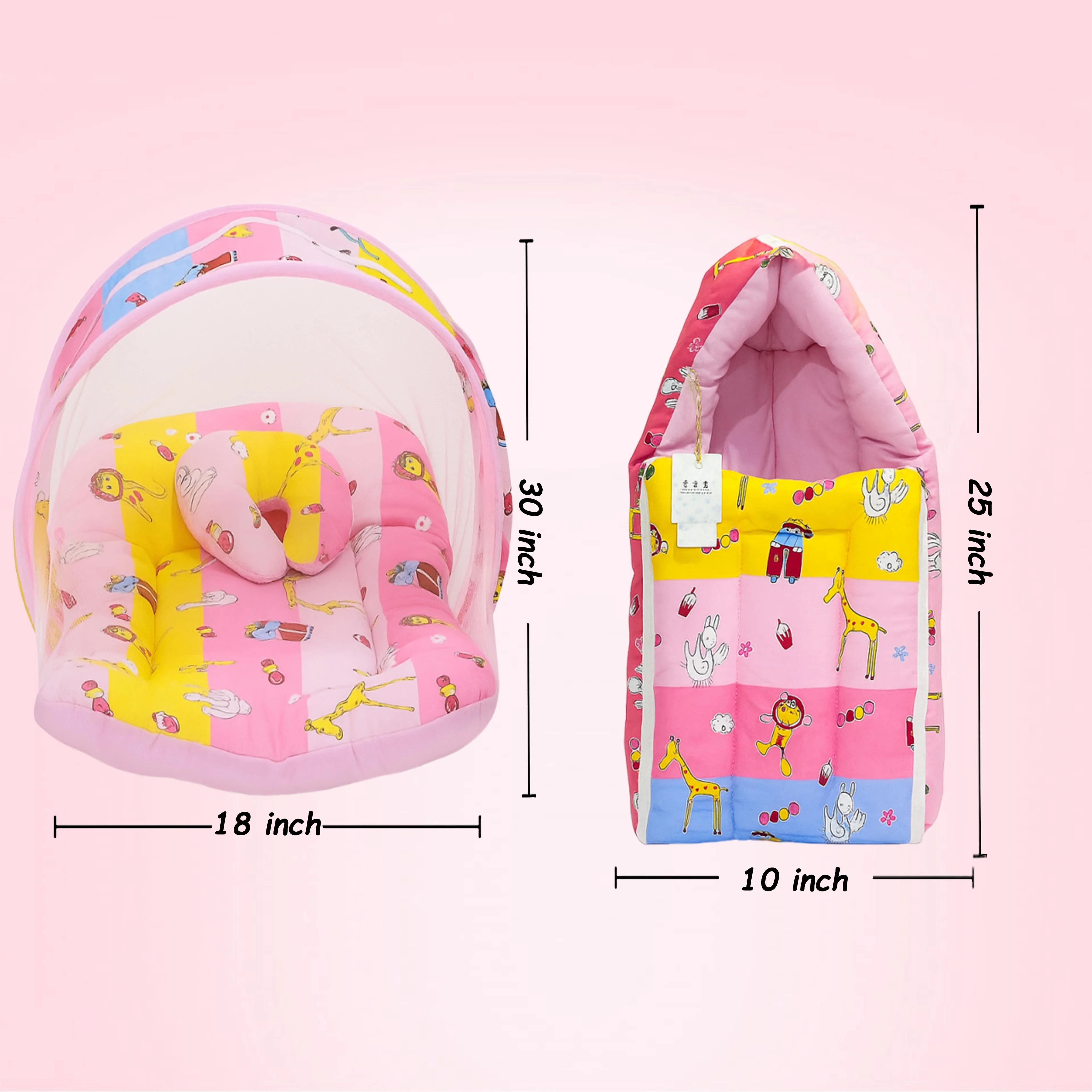 Fareto New Born Baby Premium Quality Mattress with Net & Sleeping Bag(0- 4Months)(Pink Ziraf)(F83)