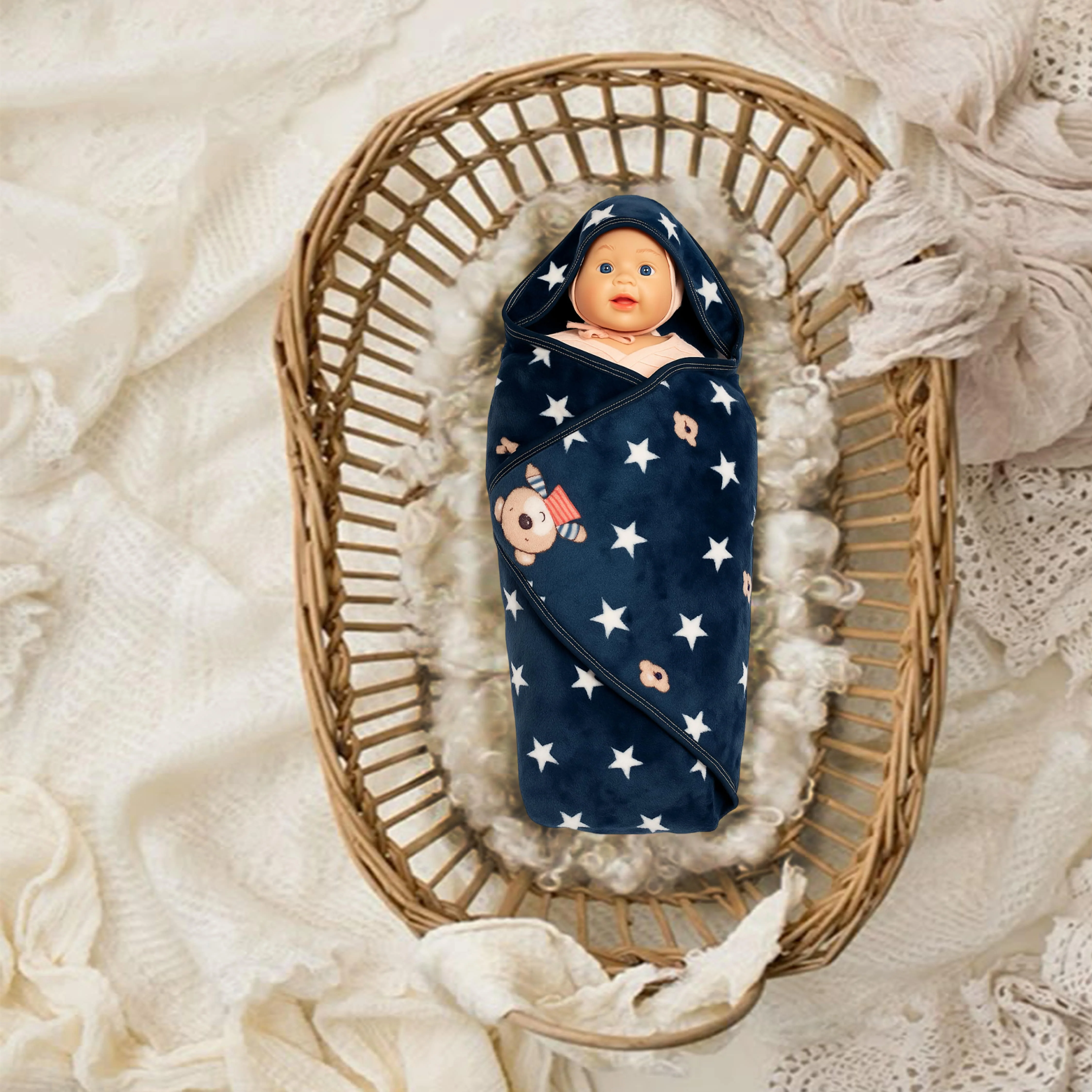 Fareto Newborn Baby Super Soft Big Size Blanket for Boys & Girls | Hooded Flannel Wrapper for( 0-12 Months) (92x85 CM) ( Pack of 1)(F599)